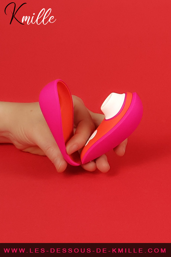 Lorsque je parle d’un tout, le toucher en fait parti et même si c’est très subjectif, je trouve qu’une fois en main mais aussi sur notre clitoris, le Womanizer Liberty tire son épingle du jeu. Il est suffisamment compact pour se lover délicatement dans le creux notre main et sa bouche est assez large pour embrasser agréablement notre bouton d’Amour sans inconfort.